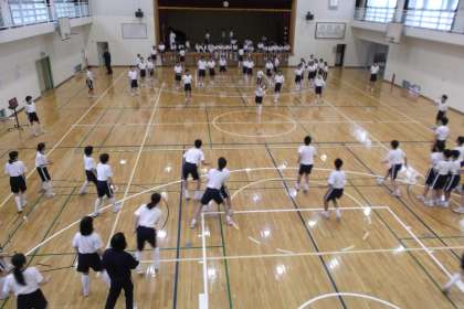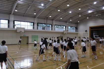後半は男女とも体育館に集まって ドッチボールを行いました。