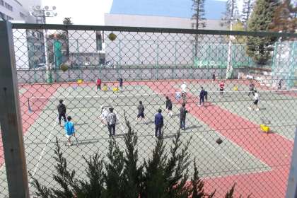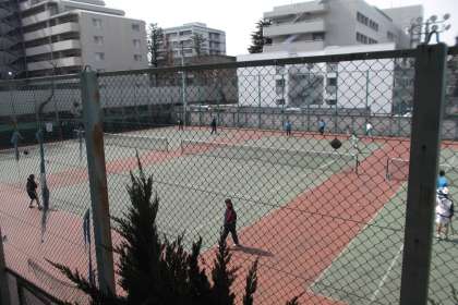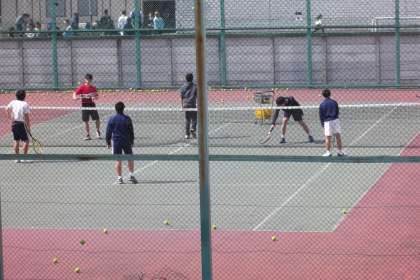 春休みでも様々な部が活動しています。 テニスコートではソフテニとテニスが OBとともに練習をしていました。