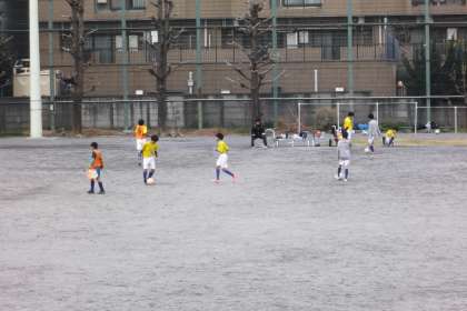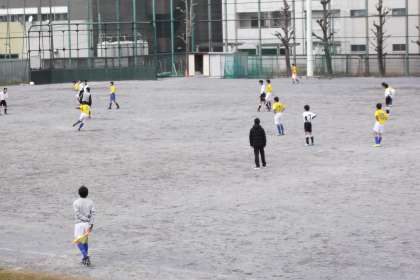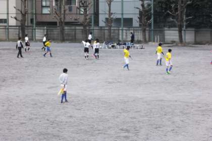 サッカー部は、港区立高陵中学校と練習試合です。 皆、一生懸命にボールを追っています。