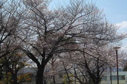 中庭の桜があと一息で満開です。