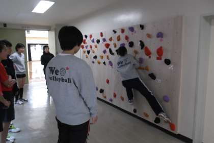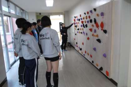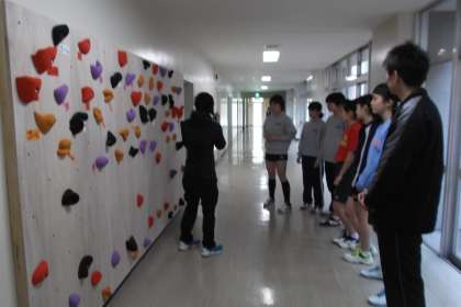 ボルタリング講習会1 公開日 2017/04/04 更新日 2017/04/04 学校日記 体育館廊下に新たなウォールを設置しました。 今日はプロのクライマーを招いてホールドを 取り付けてもらいました。 4枚のベニヤ板を横に進みますが、1分以上 かかります。 いいね(0)