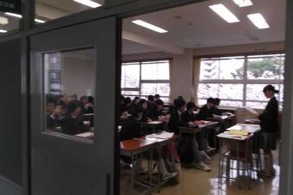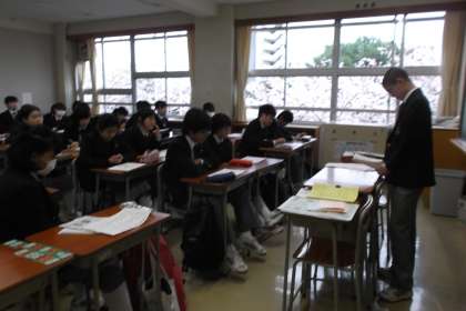 3Bは、まずは自己紹介です。 全員が前に出て自己紹介をします。