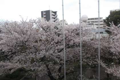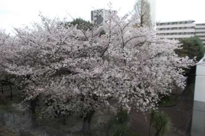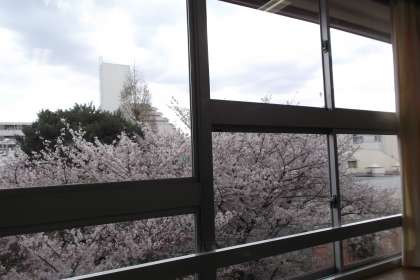 3年生の各教室からは桜が見えます。 満開だった桜も、ハラハラと散りだし 始めました。
