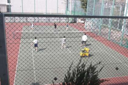 テニスコートではテニス部が 外部指導員、OBの指導の下 練習を行っていました。