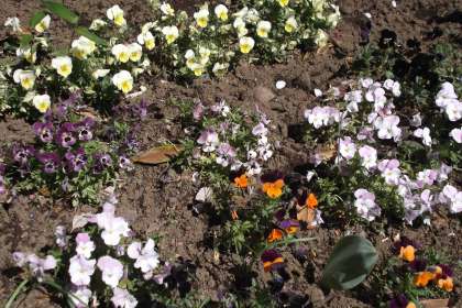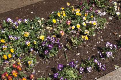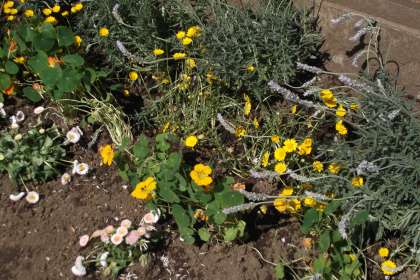 中庭の花壇にガーデニング部が 様々な花を植えました。