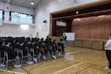 いじめ防止教育プログラム 公開日 2017/04/21 更新日 2017/04/21 学校日記 湘南DVセンターの方が いじめ防止教育プログラムの 第1段階を行っています。 毎年1年生に入学してから 早い段階でプログラムを 実施します。 第1段階は学年全体で講演を聞き 第2段階からは各クラスで討議を 中心に4回行われます。 第3段階は希望者を募り 夏休みに行われ、後日まとめの 発表を行います。 いいね(0)