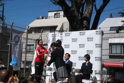 フラッグツアー歓迎セレモニー参加 公開日 2017/04/24 更新日 2017/04/24 学校日記 2020東京オリンピック・パラリンピックに向けて、 日曜日に旗を受け取る歓迎セレモニーが、三軒茶屋 ふれあい広場で開催されました。 本校生徒会役員が、リオオリンピック新体操代表の畠山選手 から旗を受け取り、その後、駅前をパレードで行進しました。 様々な分野で、本校生徒が活躍しています。 いいね(0)