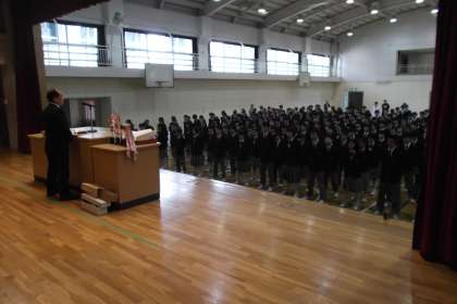 本日の全校朝会では、新年度を迎え約1か月を過ぎ