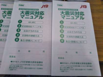 修学旅行日記15 公開日 2017/05/17 更新日 2017/05/17 学校日記 修学旅行京都班行動三種の神器 本日の京都市内の班行動を安全に過ごす ための三種の神器です。 1PHS携帯(災害時はPHSの方が繋がります) 2大震災対応マニュアル(緊急避難場所など) 3バス1日乗車券 いいね(0)