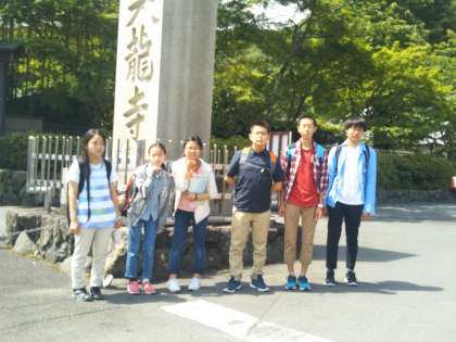 今、嵐山世界遺産天龍寺で 無事に班行動のチェックをしました。