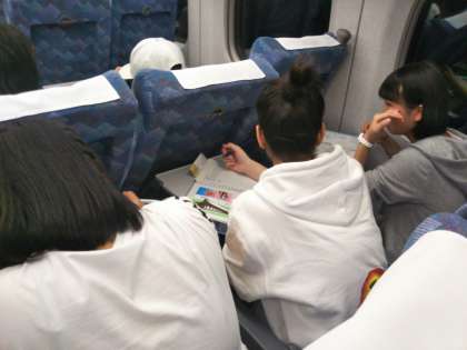 修学旅行日記44 公開日 2017/05/18 更新日 2017/05/18 学校日記 体調不良者もなく、全員無事に新幹線に乗車し予定通りに 発車しました。 早速、本日の買い物の会計報告を記入しています。 三宿中生の勤勉さには頭が下がります。 いいね(0)
