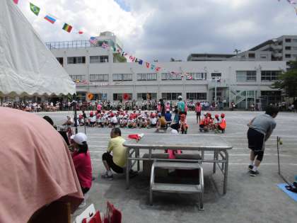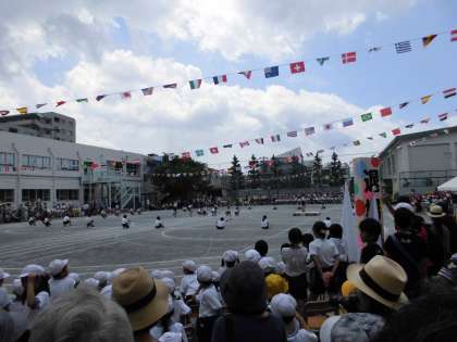駒繋小学校の運動会では、多くの保護者が 晴天の下声を限りに応援していました。