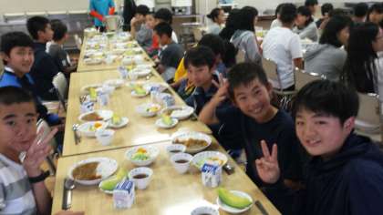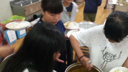 夕食はカレーライス。 食事係の手際の良さで10分前には準備完了。 お代わりもいっぱいしました。
