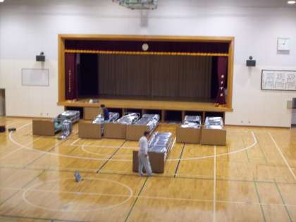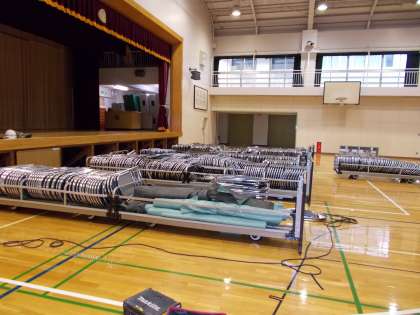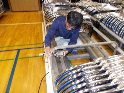 体育館のパイプ椅子収納庫の仕切りが ゆるんだり、折れたりしているので 修理してもらっています。