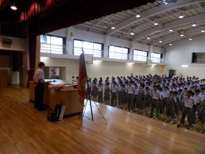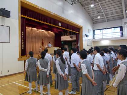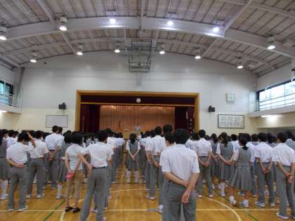 月に1度の全校朝礼 「先手必勝」のお話が中心でした。