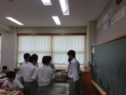おかわりに集まる2年生、最近ぐんぐん大きくなっている気がします。