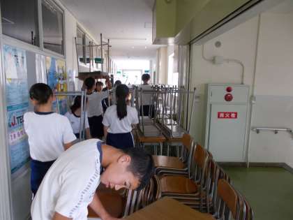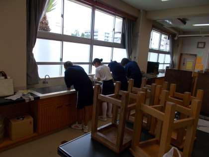 床ばかりではなく 壁や机の汚れを落としました。 特別教室もきれいになりました。