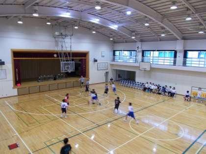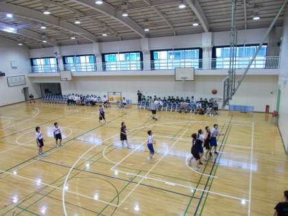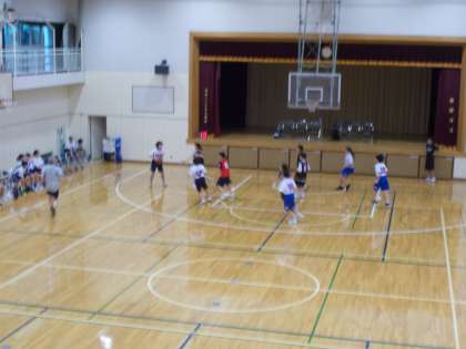 バスケットボール部が練習試合を 駒留中学校と行っていました。