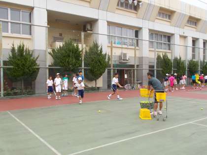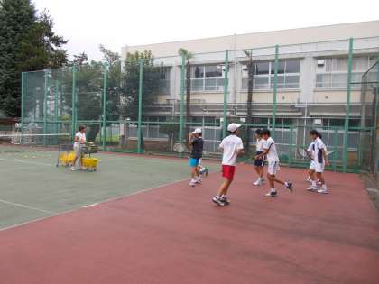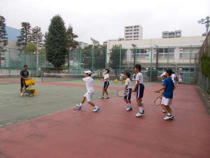 硬式テニス部は、顧問とコーチが球出しをして ストロークの練習を繰り返し行っています。
