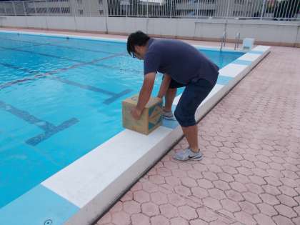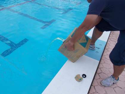 写真ではプールに直接投入していますが、機械室にある循環器の