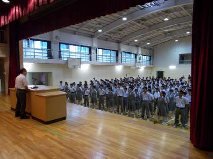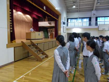全校朝礼 公開日 2017/09/04 更新日 2017/09/04 学校日記 2学期最初の全校朝礼が行われました。 校長講話は「ルールとマナー」でした。 一人一人が「ルールとマナー」を考える きっかけになるといいですね。 いいね(0)
