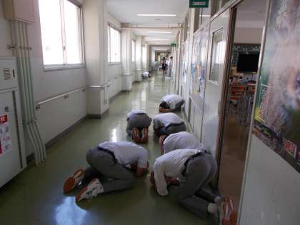 Jアラートを想定した避難訓練 公開日 2017/09/25 更新日 2017/09/25 学校日記 本日の昼休み時間にJアラートを想定した 避難訓練を実施しました。 Jアラート発令後、生徒はすぐに 低い体勢(だんごむしのポーズ)を取り、 通過や落下が確認されてから、 点呼→身を守るポーズを確認してから、 平常どおり授業を行いました。 Jアラート発令しないことを願っています。 いいね(0)