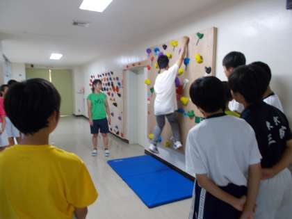 アイスクライマーの方に来ていただき スポーツクライミングの指導を していただきました。