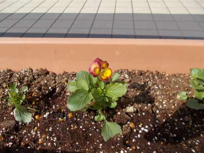 ガーデニングその後 公開日 2017/10/12 更新日 2017/10/12 部活動 先日、パンジーの苗などをプランターに 植えていたガーデニング部でしたが、 その中の一輪がもう咲いていました。 いいね(0)