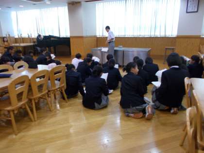 学校全体に生徒の歌声が響き渡っています。 とても、よい雰囲気です。