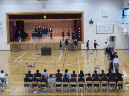 リハーサルの1時間目は 立ち位置の確認、入退場の練習を しっかり行いました。
