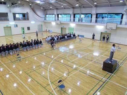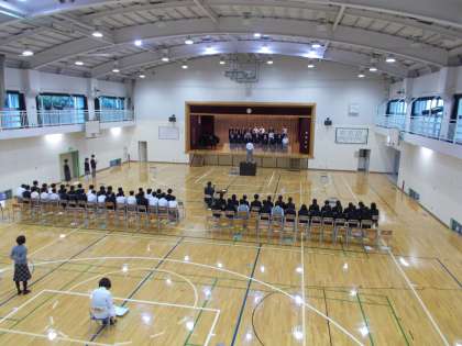 2時間目は壇上で課題曲の 「時の旅人」を各クラス歌いました。