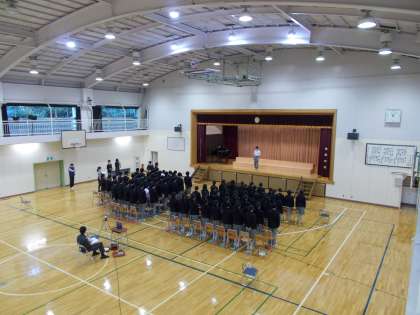 3年生のリハーサルでも 立ち位置の確認、入退場の練習を しました。