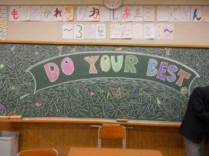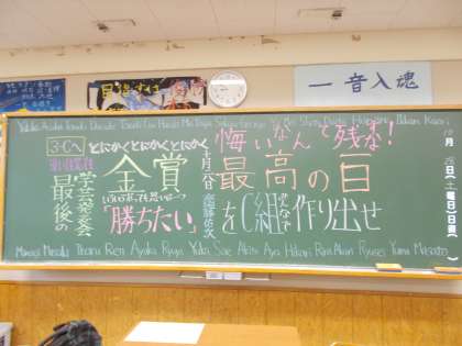 3年生の前面黒板。 力の限り頑張る意気込みが 描かれていました。