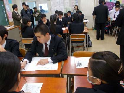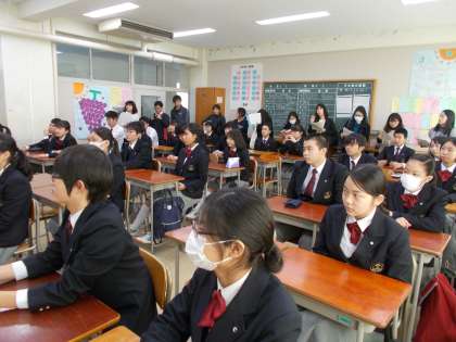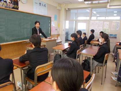 小山主幹教諭が3年C組で道徳リーダー研修を
