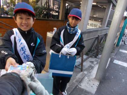池尻・三宿クリーンDAY 公開日 2017/12/04 更新日 2017/12/04 学校日記 啓発運動は池尻駅の南側の地上出口で 「ポイ捨て禁止」のティッシュ配りを行いました。 近くの床屋さんから差し入れをもらい、ニコニコ していました。 いいね(0)