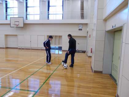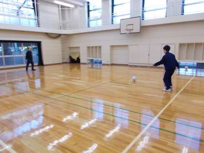 朝の格技室でニュースポーツ教室が 開かれていました。