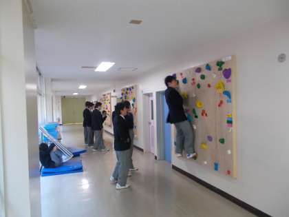 昼休みになると、生徒は体育館棟でスポーツクライミング、