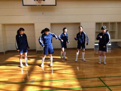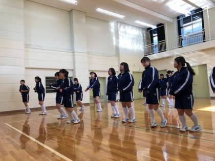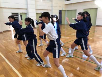 3年の体育の授業の様子です。金曜日の発表に向けてグループごとに分かれてダンスを創作しています。