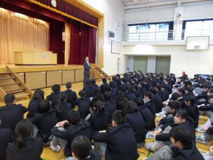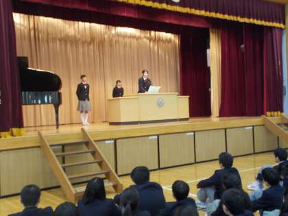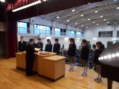 終業式後は各学年代表生徒による話、 田上先生からの連絡、競書会等の表彰を 行いました。