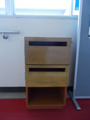 段ボールの返却ボックスが傷んだので 主事さんが立派な返却ボックスを作ってくれました。
