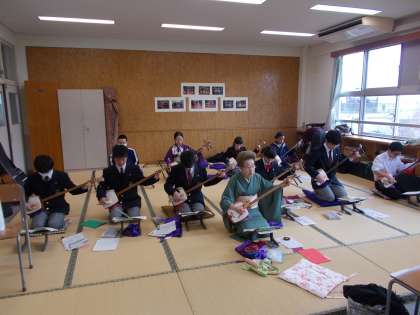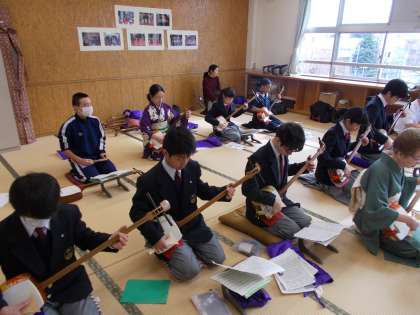 28日に行われる初春端唄演奏会の 稽古で牛込1中の生徒と合同で練習しました。