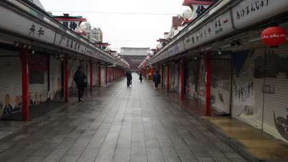 午前8時の浅草寺です。 まだ参拝客はごくわずかです。 お昼前後にチェクポイントとして全班通ります。