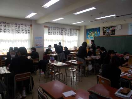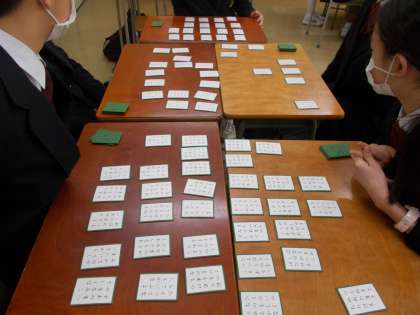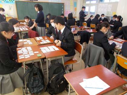 3年生の授業で百人一首が行われていました。 競技を楽しんでやっていました。