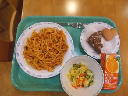 ランチルーム 公開日 2018/02/14 更新日 2018/02/14 学校日記 2年生のランチルーム給食です。 献立はスパゲッティナポリタン、イタリアンサラダ、 ココアケーキ、デザートはハート形のクッキーでした。 いいね(0)