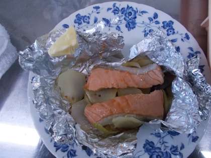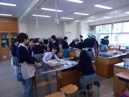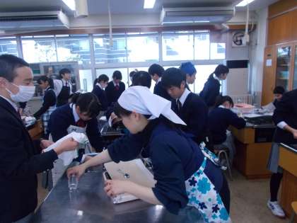 1年家庭科の授業で「鮭のホイル焼き」の 調理実習が行われました。