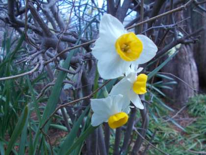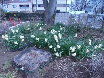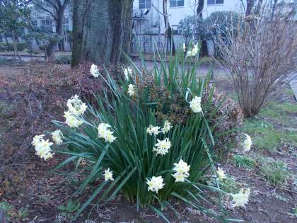 中庭の花壇の水仙が咲きだしました。