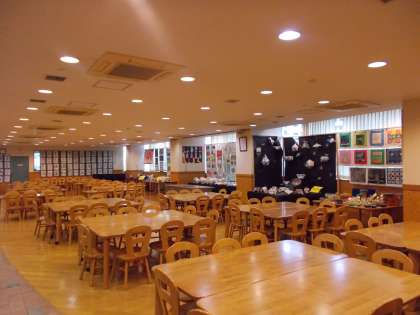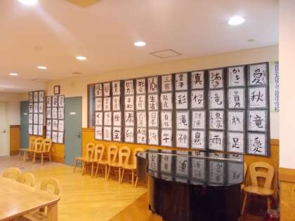 ランチルームの放送室側は夜間学級の 書写が展示されています。