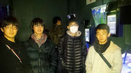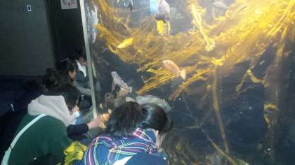 昼食後に水族館を見学しているグループに出会いました。東京湾に生息する魚たちをじっくり見学していました。