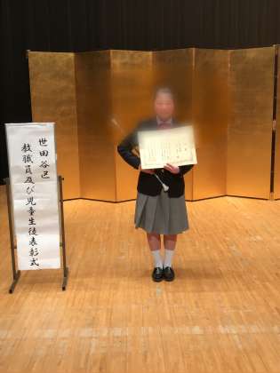 先日行われた世田谷区児童生徒表彰に