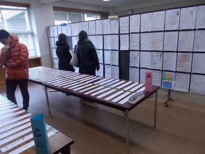 学年ごとに展示作品の見学を